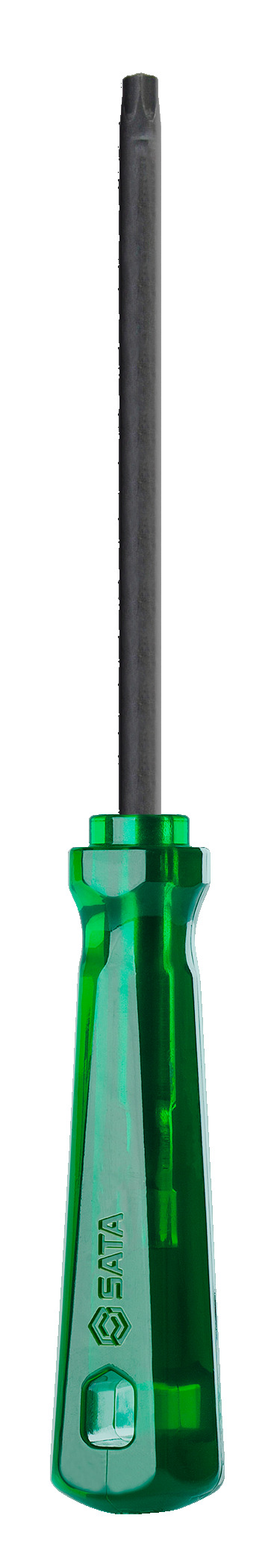 Chave Torx com cabo PVC translucido verde ergonômico T10 SATA com haste toda temperada com acabamento oxidado para evitar descascamento e proporcionar mais segurança. Com empunhadura em formato triovalado, permite que a mão se ajuste perfeitamente ao redor do cabo, evitando o deslizamento e aumentanto o torque.