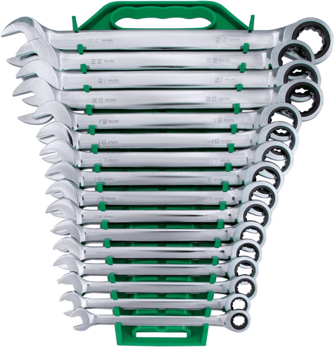 13 ? Chaves Combinadas com Catraca: 1/4 - 5/16 - 3/8 - 7/16 - 1/2 - 9/16 - 5/8 - 11/16 - 3/4 - 13/16 - 7/8 - 15/16 - 1