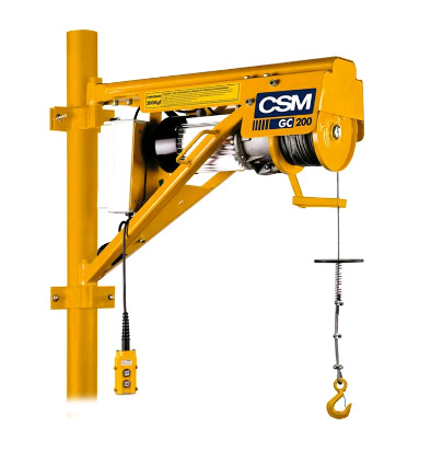 Entre os modelos disponíveis de guinchos de coluna a CSM fornece diferentes tipos conforme a tensão elétrica e a capacidades de carga.