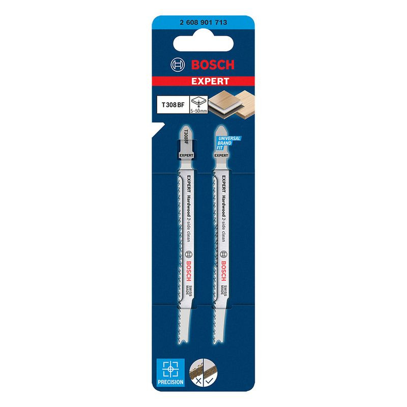 A lâmina de serra tico tico EXPERT T308 BF é ótima para marcenaria, pois tem acabamento preciso e limpo tanto na parte superior quanto inferior do corte, sendo ideal para ser utilizada no momento de instalações. É compatível com todas as serras tico tico do mercado com encaixe universal T.