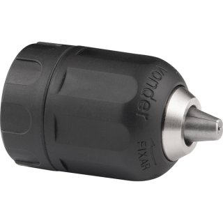 Dispensa a utilização da chave para mandril, facilitando o trabalho do operador, que coloca e retira o acessório do equipamento utilizando apenas as mãos.